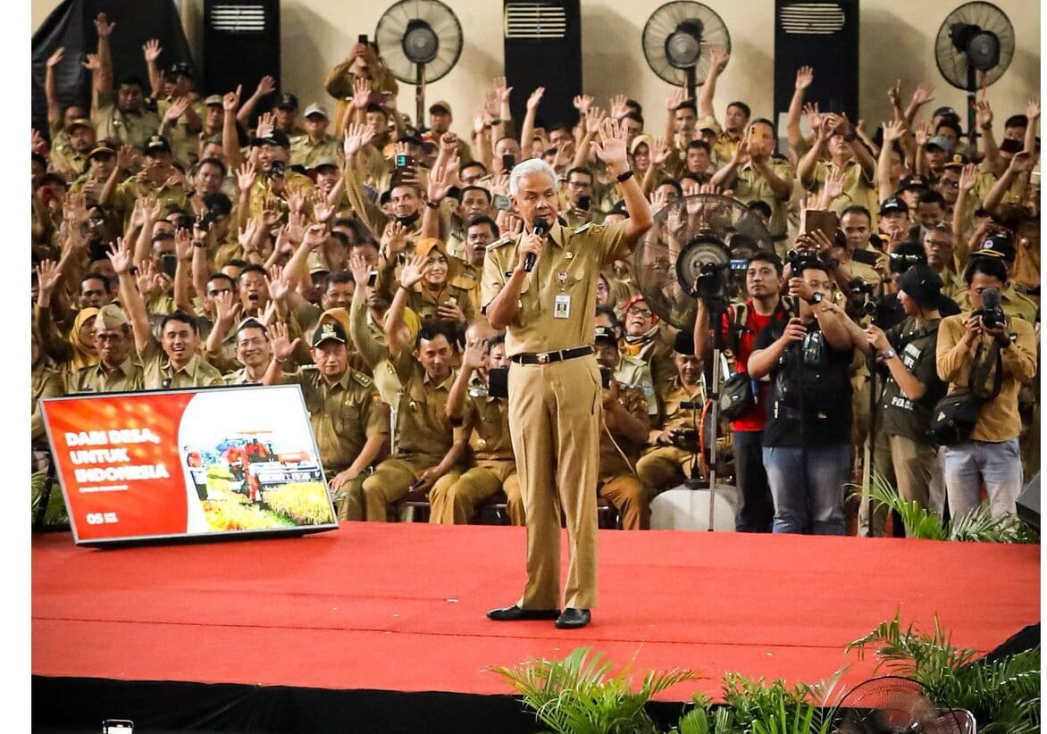 ID Realita – Gubernur Jawa Tengah Ganjar Pranowo mengumpulkan sekitar 15 ribu kepala desa, sekretaris desa, hingga perangkat desa se-Provinsi Jawa Tengah di Stadion Jatidiri, Kota Semarang, Senin (5/6/2023). Melalui Sarasehan bertajuk “Gotong Royong Membangun Kemandirian”, Ganjar mengajak seluruh perangkat desa untuk bergerak serentak menyelesaikan persoalan daerah.